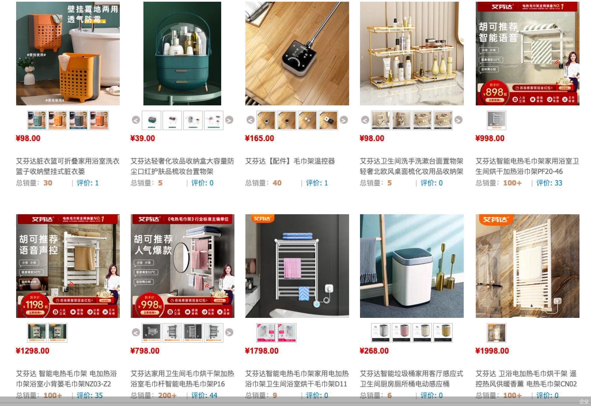 艾芬达线上收入依赖“毛巾烘干架”和“电热毛巾架”