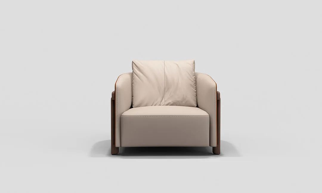 The arc design of solid wood parts on the side of the product is round, which shows the structural charm of oriental furniture, and open coating is adopted to make a perfect combination of paint and wood for better texture and touch. The leather of the product is fine, uniformly colored and soft. It has such qualities of environment-friendliness, smoothness, scratch resistance, wearability, easy maintenance, water proof, dust proof, static proof and so on. The cosy and natural colour can bring quiet into the interior atmosphere, which meets the aesthetic needs of modern people. The high-level tone highlights the artistic temperament of the product, classy and appealing.