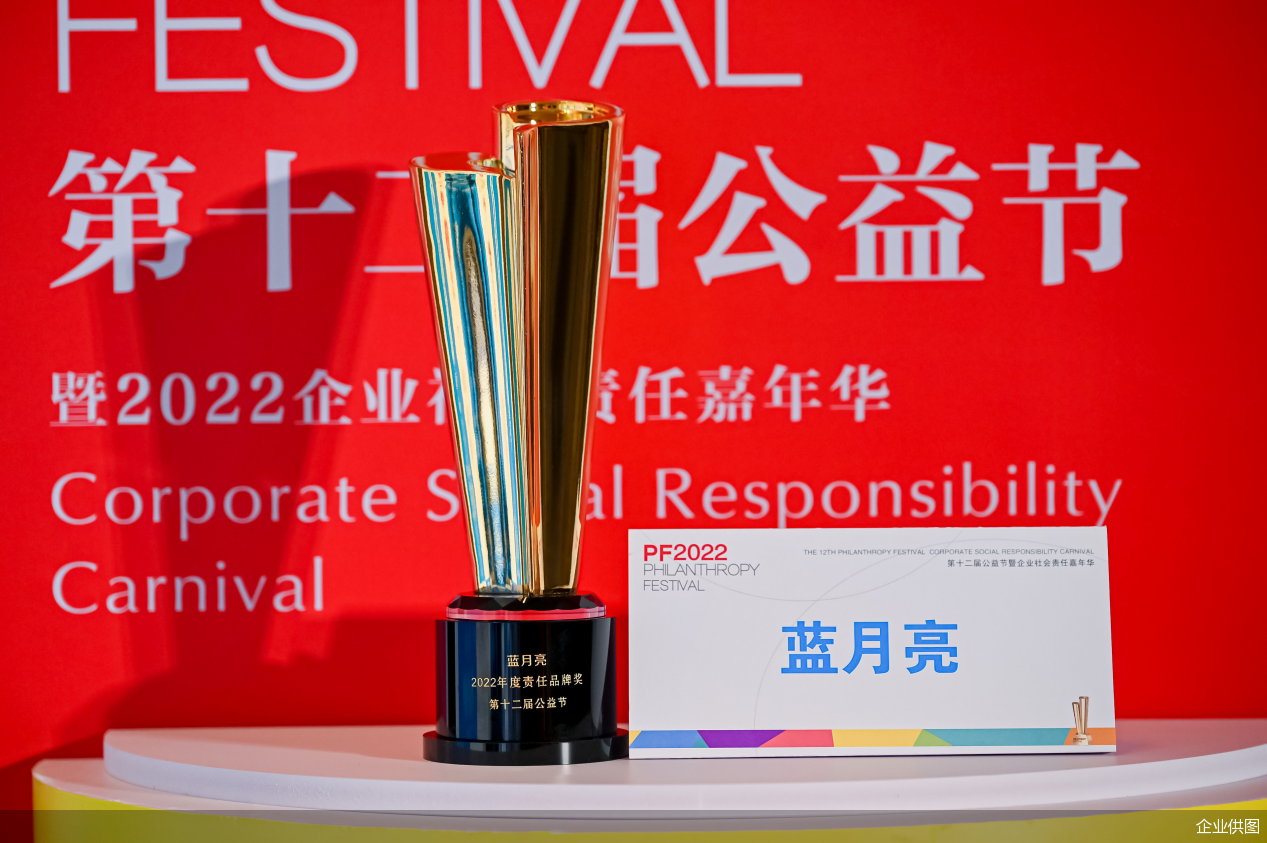 在本届公益节活动评选中,蓝月亮集团凭借在绿色环保、企业社会责任等方面作出的突出贡献,荣膺“2022年度责任品牌奖”,这已是蓝月亮连续第八年获得该奖项。