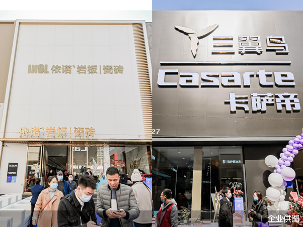依诺瓷砖(左)和海尔·卡萨帝·三翼鸟场景店(右)同处闽龙陶瓷总部基地