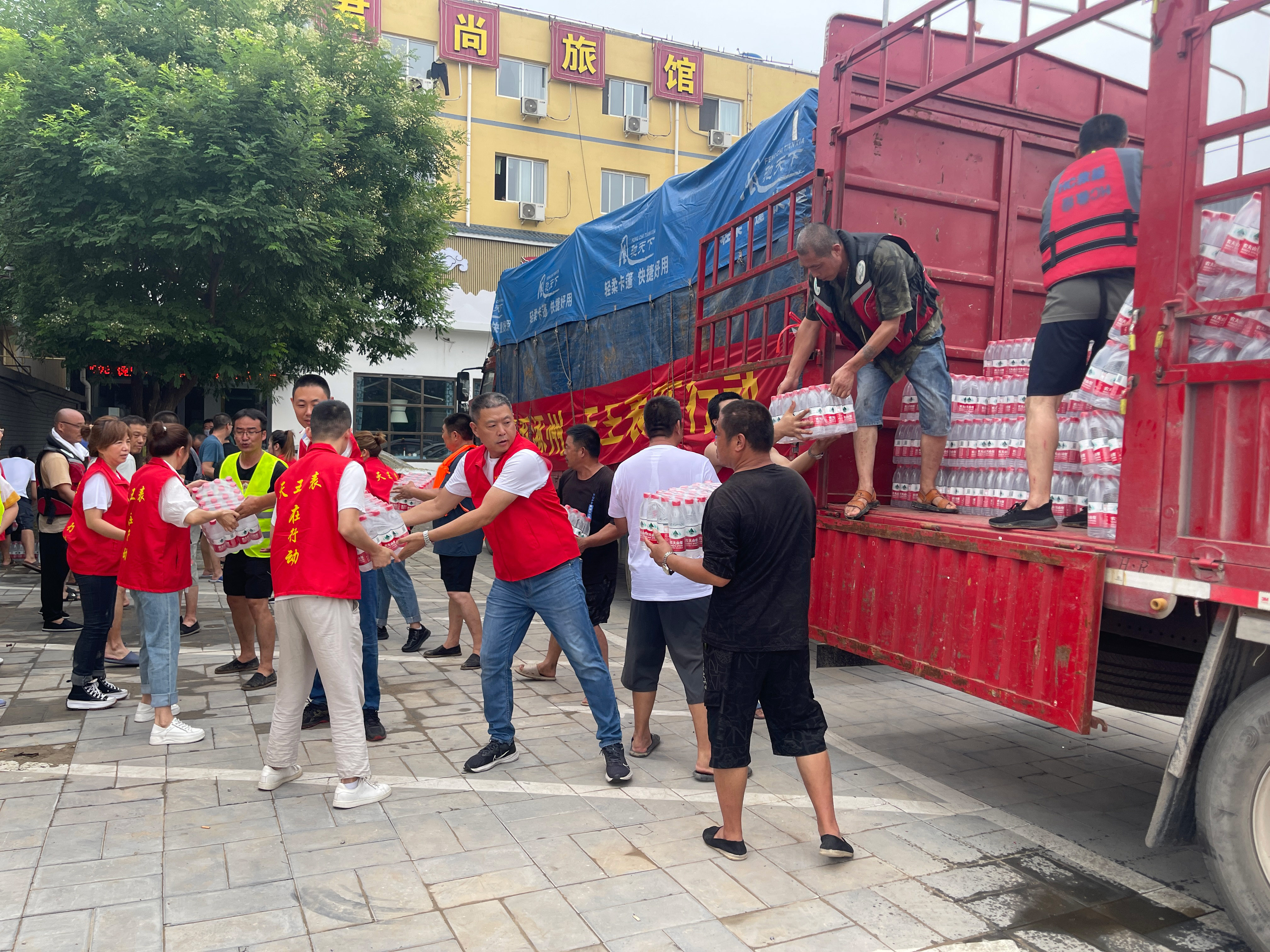 涿州刁四村洪水未退,当地各部门正在积极开展救灾工作,天王表河北团队表示“虽然不能奋战在抗汛一线,但希望能为防汛工作尽一些绵薄之力”。天王表河北团队主动联系到受灾严重地区涿州市刁窝镇刁四村的村委会,了解到救灾情况及物资需求,在不影响当地救灾的大前提条件下,于8月4日上午将800箱方便面、800箱矿泉水、100箱火腿肠,共计10万余元的救灾应急物资,经协调沟通后,停在离高速不远的空地,将应急物资有序分发给当地居民。