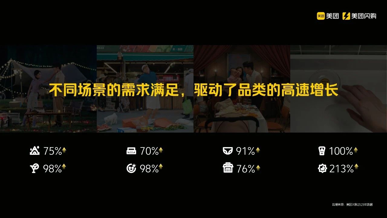 场景营销为何在美团具备独特优势?因为美团的生态系统和场景中涵盖了多种本身就有的业态。例如,我们与酒旅行业有深度合作,酒类订单增长显著,因此在用户出行场景中,我们能够巧妙地推荐相关品类。这正是美团场景营销的核心所在。