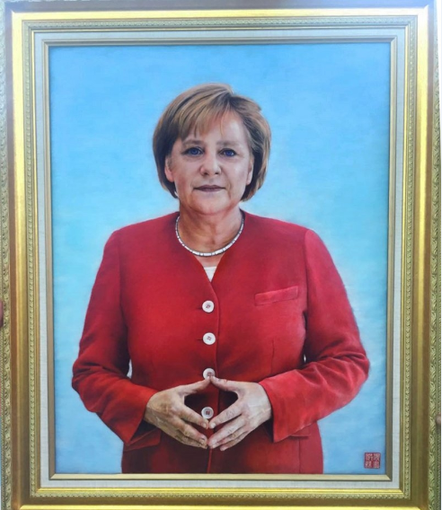 “国礼”洪滨丝画《德国总理默克尔肖像》