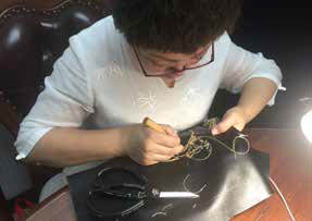 “天干饿不死手艺人”的古语之教,是她从父亲那里听到的。从手工皮革制作,到每一个部件的精制完成,她都敬业、专注,倾注了全部心血。设计、剪裁、启帮、免帮、缝纫、整理、排鞋、清整,每个工序她都耐心完成。在制作产品时,她刻苦钻研,专注塑造品质,她的削皮刀技速度又快又准,能把原皮边缘削到 0.1 毫米厚度;刀工划皮的技艺,能将皮革划成 0.8 毫米的皮 丝,做成皮革艺术品。