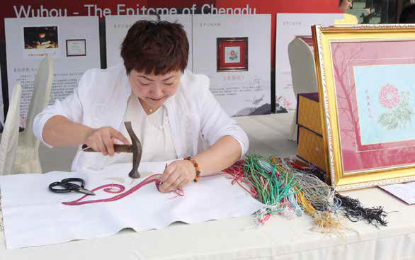 面、底部数据修制调整,做出第一双手工软包皮拖鞋,失传了几十年的手艺又重新复活起来。她倾心于手工皮艺的传承、保护、开发及弘扬工作,在传承百年技艺——全手工工艺软包皮拖鞋制作技艺基础上将其创新发扬,将刺绣工艺、手绘工艺、掐丝工艺、镂雕工艺等多种手工技艺融合,把皮艺制品与四川特色文化结合起来,使产品更具巴蜀地域文化特色、更具艺术价值。由她钻研创作的世界唯一的皮丝画,将皮艺的手工技巧展现得淋漓尽致,这也使她成为“中国皮丝编织画第一人”。在大家的鼓励和支持下,她还勇敢地挑起了传承濒临失传的传统软包皮拖鞋制作技艺的重担,招收培养数十名学徒,让这一民族文化特色非遗品牌重新辉煌,走上国际舞台。