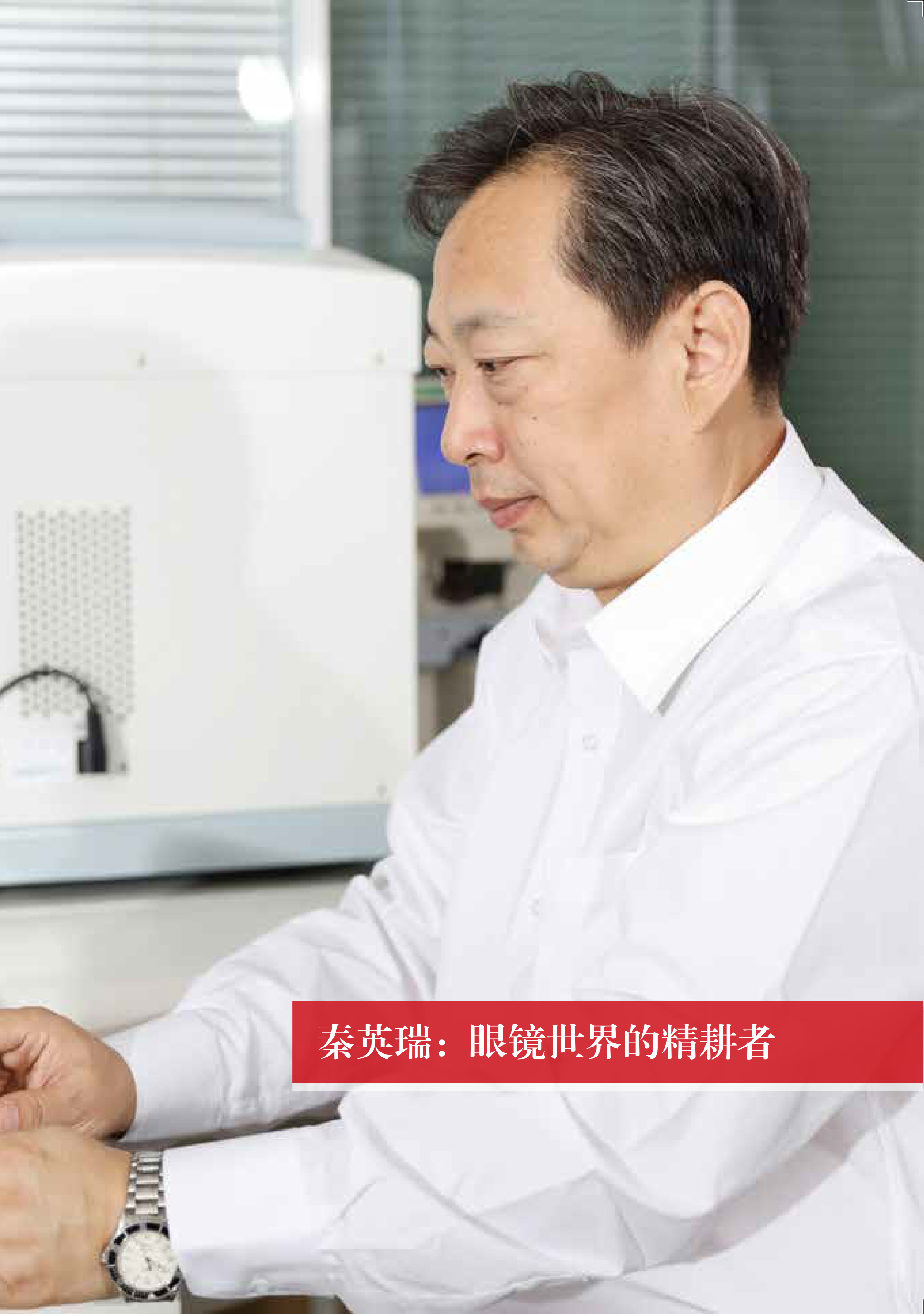 秦英瑞 1963 年生,1980 年参加工作,入职大明眼镜公司。从事眼镜工作 38 年,他潜心钻研,努力提升验光水准,解除了 40 多万名患者的配镜烦恼,如今已成为北京乃至全国赫赫有名的验光大师、国家一级 / 高级验光技师、大明眼镜公司首席验光师、全国五一劳动奖章获得者、全国劳动模范,享受国务院政府特殊津贴。他对老视、隐斜视的屈光矫正应用灵活,具有独特的技术风格,对低视力、双眼视机能疑难问题具有独到的见解和独特的处理方法。他是北京市地方标准《北京市验光配镜开业条件暂行规定》的主要起草人之一,2010 年被评为北京市服务业传统技艺大师,并多次为党和国家领导人、两院院士、全国人大代表、政协委员验光配镜。