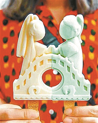 张磊说,他目前最满意的一款雪糕是为杭州西湖景区设计的,“这款雪糕的原型是西湖断桥,分为一对两支,两支雪糕上分别描绘了站在断桥两边的许仙和白娘子,吃雪糕的人可以将两支雪糕拼在一起拍照”。