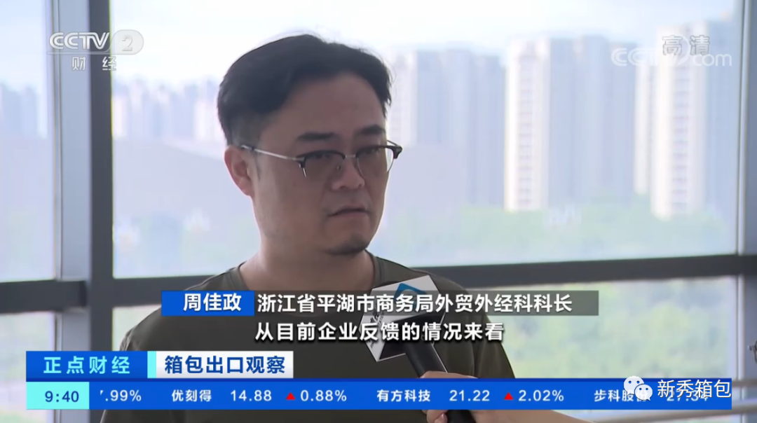 从目前企业反馈的这个情况来看,整体的订单还是比较充裕,我们全市的这个箱包行业的出口增长也超过了50%。