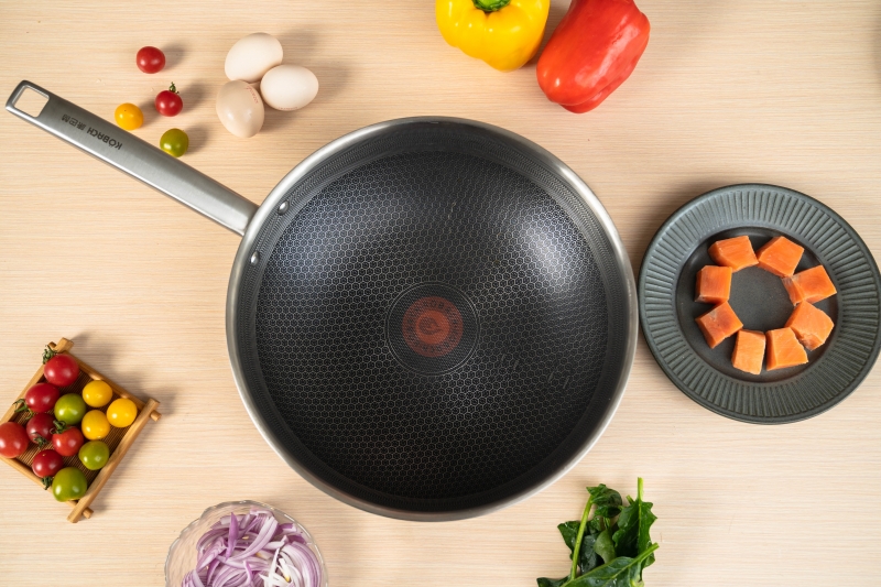 如今的双蜂窝第六代蜂窝锅,更是一款让用户满满幸福感的产品。它采用双倍蜂窝蚀刻纹理结构,防粘效果升级,煎蛋不粘性能更是达到国际I级不粘标准,且双蜂窝设计使得锅内壁形成内蜂窝油路,大大减少了烹饪时对油的需求;锅内红点控温的设计,从鲜红到暗红的颜色变化,让厨房小白也能够轻松控制油温,炒出一切都“刚刚好”的美味佳肴,而且炒菜时不易产生油烟,让上班族做完饭无需更换衣物即可轻松出门。锅体采用中国科学院金属研究所团队研发的抗菌不锈钢材质,有效呵护消费者健康。此外,安全防溢阀、轻量化设计、双面全覆盖蚀刻纹理等技术优势,也是康巴赫对健康饮食、愉悦厨房理念的另一种诠释。