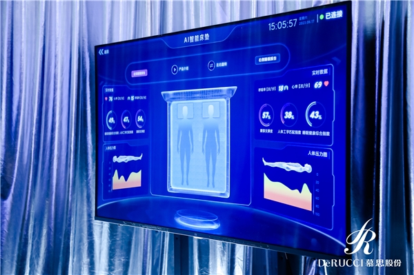 慕思把AI床垫直接搬进了展厅,这张搭载了满满慕思黑科技的床垫,可以通过非接触式生物识别传感器技术,将人体接触面识别并划分为肩、背、腰、臀、腿5个部位分区,根据不同的人体脊椎生理曲度提供主动适应调节床垫的软硬度。从而解决千人千面的床垫睡感问题,让不同身高、体重、体型、性别的个体都能拥有适合自己身体的床垫支撑力。慕思甚至做到了左右分区独立调节,即便是身体条件迥异的夫妻二人也可以根据各自喜好调整好床垫软硬度,各自深睡不受干扰。