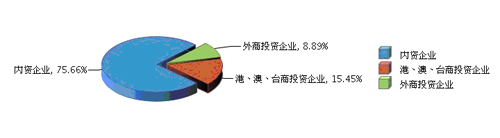 从企业注册类型看,内资企业利润总额占比大,增长较快。内资企业完成累计利润总额75.12亿元(占75.66%),同比增长23.61%;港、澳、台商投资企业完成累计利润总额15.34亿元(占15.45%),同比增长-0.01%;外商投资企业完成累计利润总额8.83亿元(占8.89%),同比增长-10.79%。