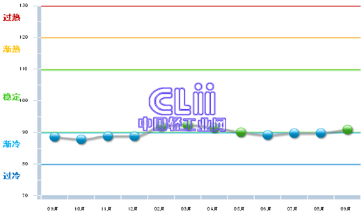 图1 2012年9月~2013年9月家具行业利润景气指数变化态势