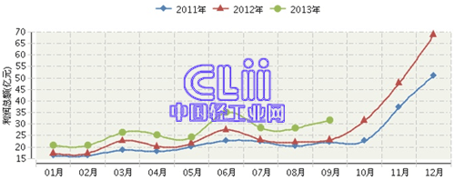 图2 2013年1~9月家具行业规模以上企业月度利润总额及增速