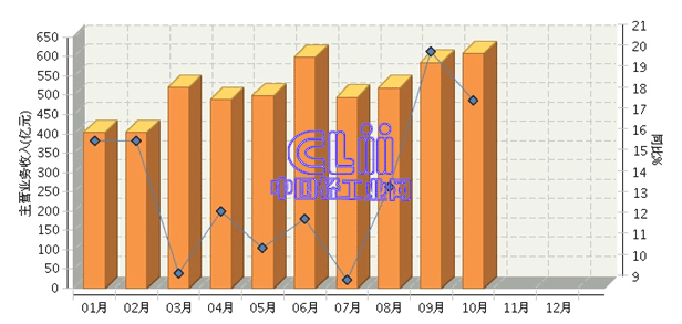 1~10月,家具行业规模以上企业(下同)累计完成主营业务收入同比增长13.89%,仅占轻工全行业累计主营业务收入的3.14%。与往年的月度主营业务收入走势相同,10月延续攀升走势,完成了608.01亿元,但增速有所回落,比9月下降了2.32个百分点(图2和图3)。