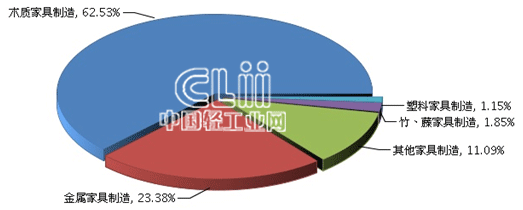与2012年相比,木质家具制造业、其他家具制造业、竹、藤家具制造业的占比分别扩大了0.89个百分点、0.80个百分点与0.49个百分点,而金属家具制造业、塑料家具制造业的占比则分别收窄了2.11个百分点和0.07个百分点。