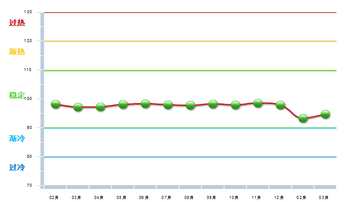 图2 2014. 2—2014.3 五金行业景气指数变化态势