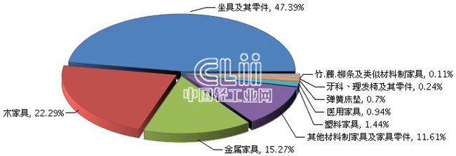 图4 2014年1~3月家具行业主要商品累计出口值占比情况