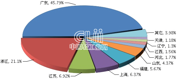 图6 2014年1~3月主要地区家具行业累计出口值占比情况
