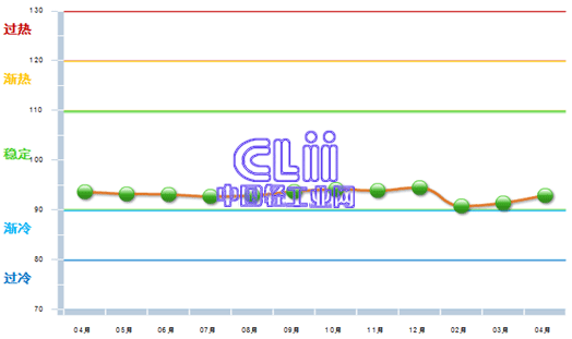 图1 2013年4月~2014年4月家具行业主营业务收入景气指数变化态势