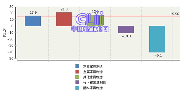 同期,金属家具制造业、其他家具制造业、木制家具制造业的累计利润总额增速(下称“累计增速”)较快,分别比家具行业平均水平高了5.49个百分点、1.49个百分点及0.31个百分点;塑料家具制造业、竹、藤家具制造业的降幅较大,分别同比下降40.14%和10.33%(图5)。