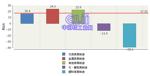 图5 2014年上半年家具子行业规模以上企业累计利润总额增速情况