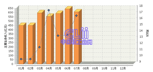 图3 2014年1~7月家具行业规模以上企业月度主营业务收入及增速