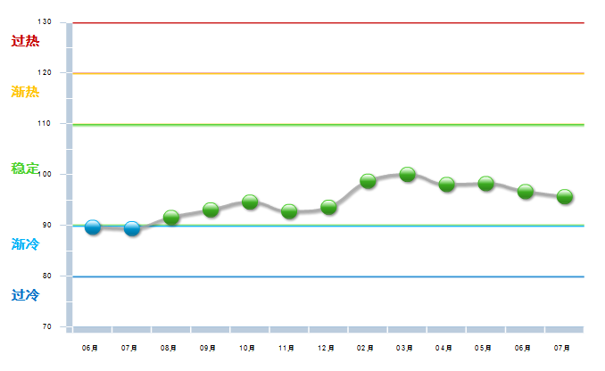 图3 2013.6----2014.7月工艺美术主营业务收入景气指数变化态势.