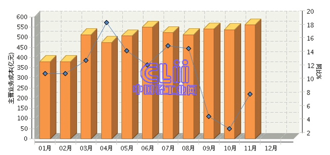 2014年1~11月全国家具行业主营业务成本累计同比增长11.72%
