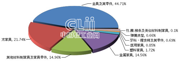 图4 2015年1~2月家具行业主要商品累计出口值占比情况