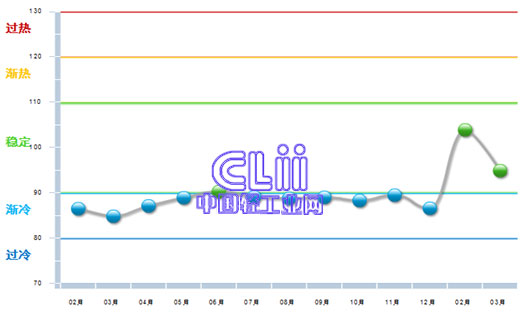 图1 2014年2月~2015年3月家具行业利润景气指数变化态势