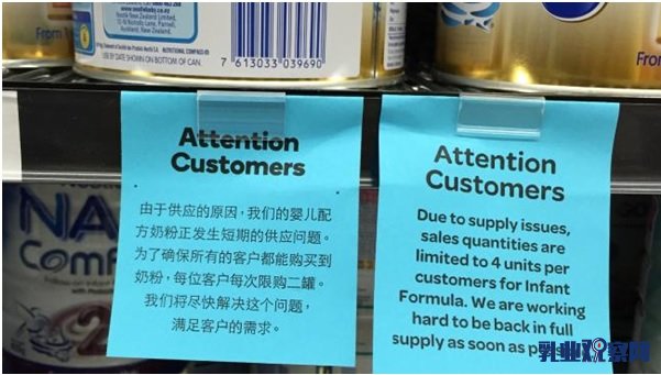 澳大利亚超市涉种族歧视:中文布告限买2罐奶粉 英文限4罐