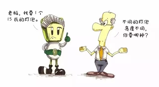 因此,我们可以很高逼格地跟老板说:“我要一个**流明的灯泡。”然并卵,没几个老板能听懂我们的需求,也没几个产品会在包装上注明是多少流明的。