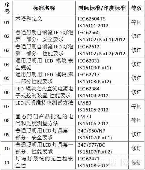 印度LED的相关标准