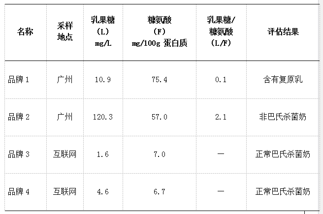 进口品牌巴氏杀菌奶中乳果糖与糠氨酸含量