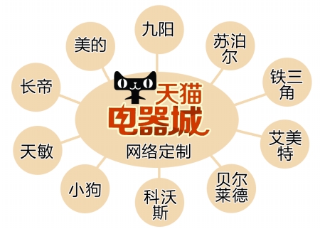 天猫相关负责人昨日向记者透露,与渠道商和生产商合作进行“包销”不同,天猫此次包下生产线进行定制,是根据这十家品牌商此前在天猫电器城上的销售数据和收到的客户评价等多维数据,综合反馈给品牌商,商家经过仔细权衡后对产品进行改进和定制,给天猫拉出专门的生产线进行生产。比如九阳豆浆机就在定制生产线上面向25-35岁的主流网购懒人族新增免滤速磨功能;美的电饭煲针对消费者评价中反馈的“产品易脏”缺点,改进为全钢外观设计。此外,由于生产线由单一渠道商包下,省去分销环节,不仅价格可以更加便宜,商品从设计、产出到上市的周期也可以大为缩短。