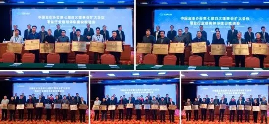 与会的领导为盐业信用体系建设参评单位颁发了信用评价牌匾,60余位企业代表参与了授牌仪式,同时举办了《信用盐业自律公约》的签署仪式。