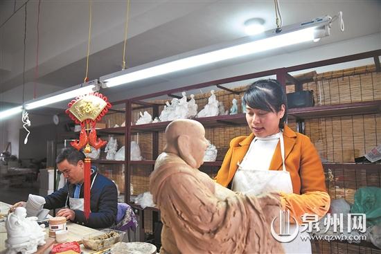 “今年初六就开工了!”去年5月入驻德化县新秀园的省级工艺美术大师叶云凤,在工作室忙着创作中型的弥勒雕像。德化县新秀园是该县陶瓷新秀的“孵化园”,一期已吸引65家企业、研究所加入,去年底已有20多家陆续入驻。“这是一个可以积攒人气、提升技艺的好平台。”谈到当时选择入驻新秀园,她补充道,当时资金有一定困难,感谢政府给了三年的贴息贷款,让年轻人能更大胆地起步。