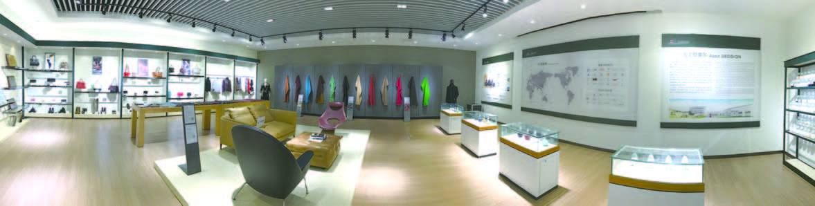 为让客户全面了解皮革化工行业发展历程,核心企业德赛尔新材料搭建了“皮革皮化展示中心”,集中展示了从皮革化工材料生产到中游制革以及下游皮鞋皮具等制品的完整产业链,并对新老产品应用资料、市场流行皮样、经典工艺、应用对比皮样及数据性能分析、产品性能总结等专业技术资料进行归集,让技术研发人员零距离接触世界前沿领域和顶尖制品,帮助其开拓思路、激发思维,帮助基地企业不断研发创新新产品、提高市场竞争力,也成为皮化基地对外宣传和企业产品的展示窗口。
