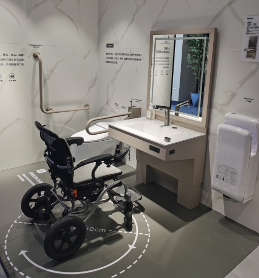 箭牌养老空间的展示给记者留下极其深刻的印象。目前,智能卫浴更受年轻消费者追捧,但事实上这类产品的功能对老年群体非常友好。在箭牌养老空间中,智能坐便器侧面距离地面高约70cm的地方安装了安全扶手;智能浴室柜为可升降式,且浴盆下方悬空,即使坐在轮椅上也没有使用障碍。在走访中,箭牌集团副总经理谢炜表示,下一步,公司在保持传统家居产品稳定增长前提下,将快速提升定制卫浴市场份额,力争以品牌与资源储备构建全屋定制业务竞争优势。