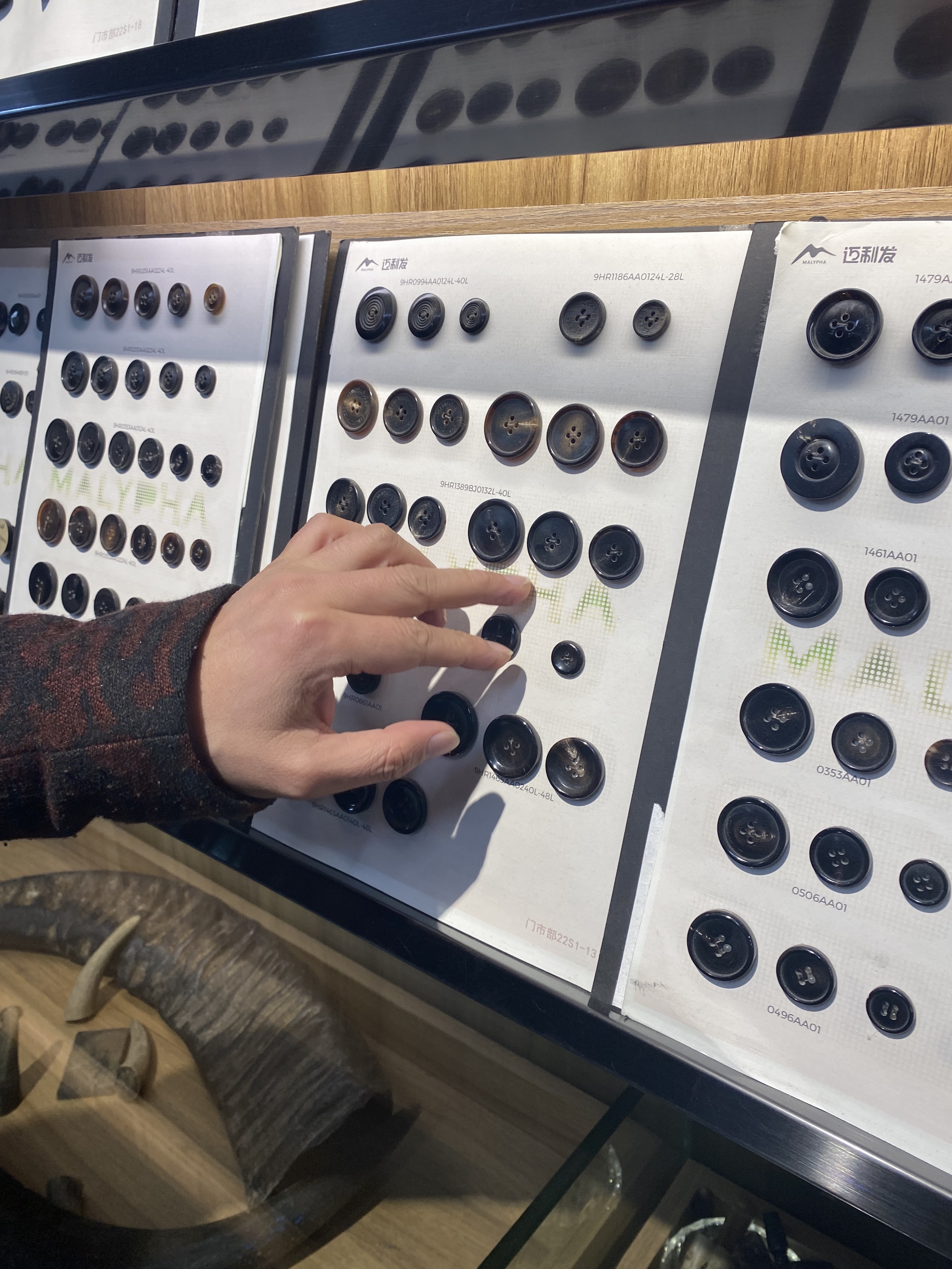 桥头纽扣市场中的天然牛角扣。王蕙蓉 摄