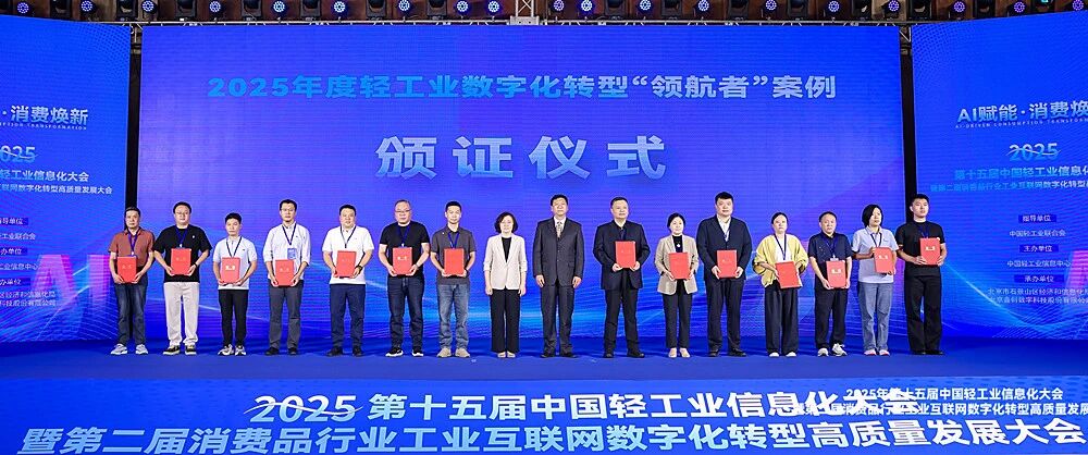 图为2025年度轻工业数字化转型“领航者”案例颁证仪式现场。