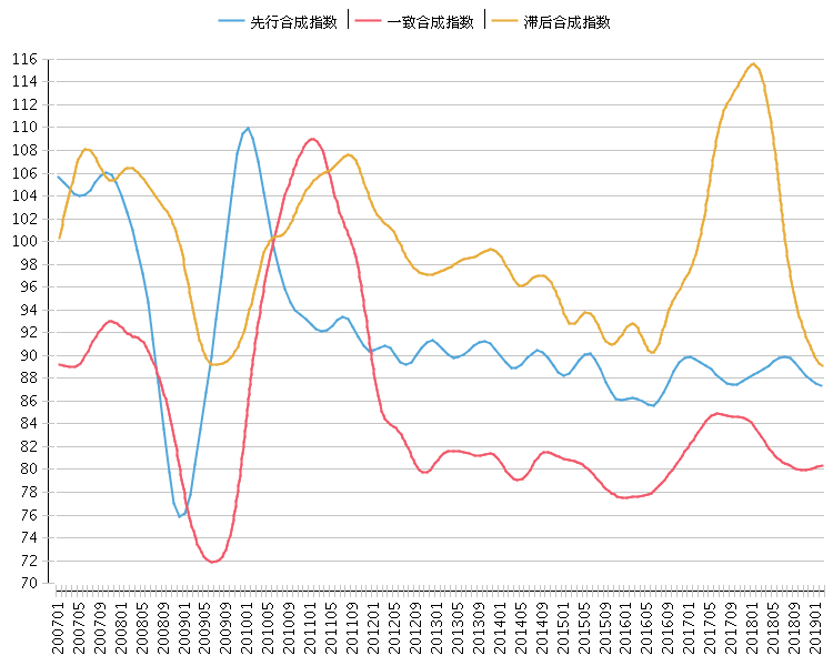 中国轻工业 耐用消费品行业景气指数显示,02月, 一致合成指数为80.39点(2010年=100), 比上月下降0.00点; 先行合成指数为87.36点(2010年=100), 比上月下降0.22点; 滞后合成指数为89.12点(2010年=100), 比上月下降0.54点。