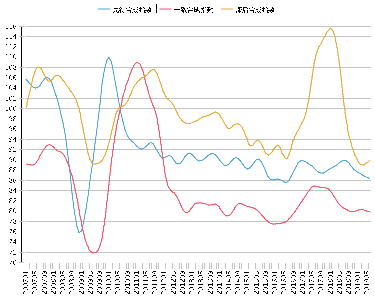 中国轻工业 耐用消费品行业景气指数显示,06月, 一致合成指数为79.86点(2010年=100), 比上月下降0.18点; 先行合成指数为86.40点(2010年=100), 比上月下降0.15点; 滞后合成指数为89.99点(2010年=100), 比上月上升0.40点。