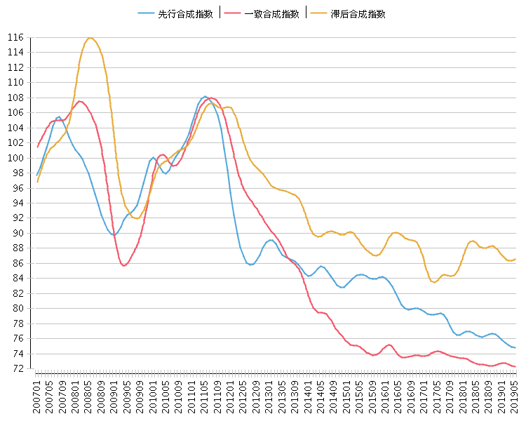 中国轻工业快速消费品行业景气指数显示,05月, 一致合成指数为72.30点(2010年=100), 比上月下降0.13点; 先行合成指数为74.78点(2010年=100), 比上月下降0.12点; 滞后合成指数为86.63点(2010年=100), 比上月上升0.19点。