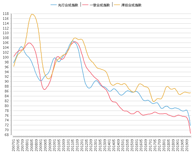 2019年12月, 中国轻工业快速消费品行业一致合成指数为68.74点(2010年=100), 比上月下降3.04点; 先行合成指数为71.93点(2010年=100), 比上月下降3.11点; 滞后合成指数为85.41点(2010年=100), 比上月上升0.06点。