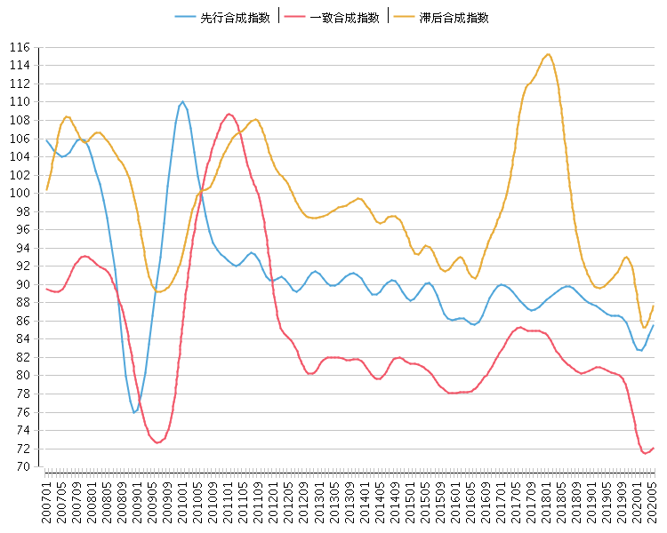 耐用消费品行业景气指数显示,2020年5月, 该行业一致合成指数为72.16点(2010年=100), 比上月上升0.4点; 先行合成指数为85.51点(2010年=100), 比上月上升1.13点; 滞后合成指数为87.68点(2010年=100), 比上月上升1.33点。