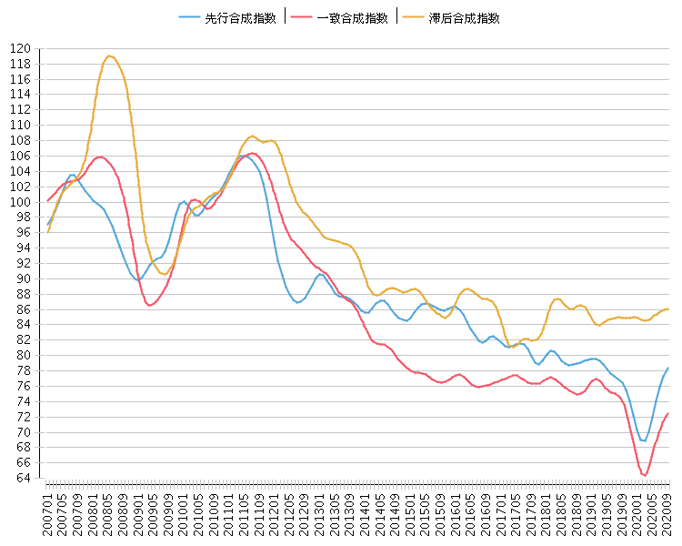 快速消费品行业景气指数显示:2020年9月,该行业一致合成指数为72.54点(2010年=100), 比上月上升0.83点; 先行合成指数为78.38点(2010年=100), 比上月上升1.12点; 滞后合成指数为86.16点(2010年=100), 比上月上升0.13点。