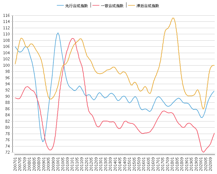 耐用消费品行业景气指数显示:2020年12月,该行业一致合成指数为78.24点(2010年=100),比上月上升1.13点;先行合成指数为91.64点(2010年=100),比上月上升0.43点; 滞后合成指数为99.99点(2010年=100),比上月下降0.05点。
