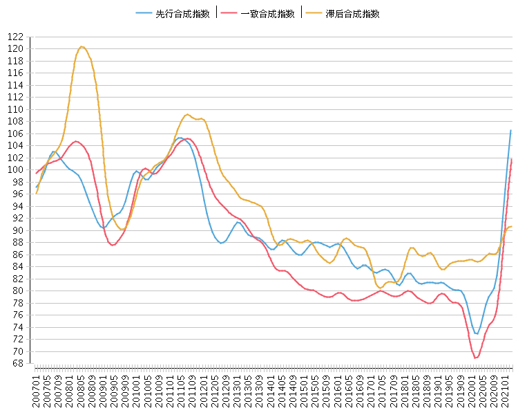快速消费品行业景气指数显示:2021年3月,该行业板块一致合成指数为101.79点(2010年=100), 比上月上升4.69点; 先行合成指数为106.57点(2010年=100), 比上月上升4.56点; 滞后合成指数为90.73点(2010年=100), 比上月上升0.11点。