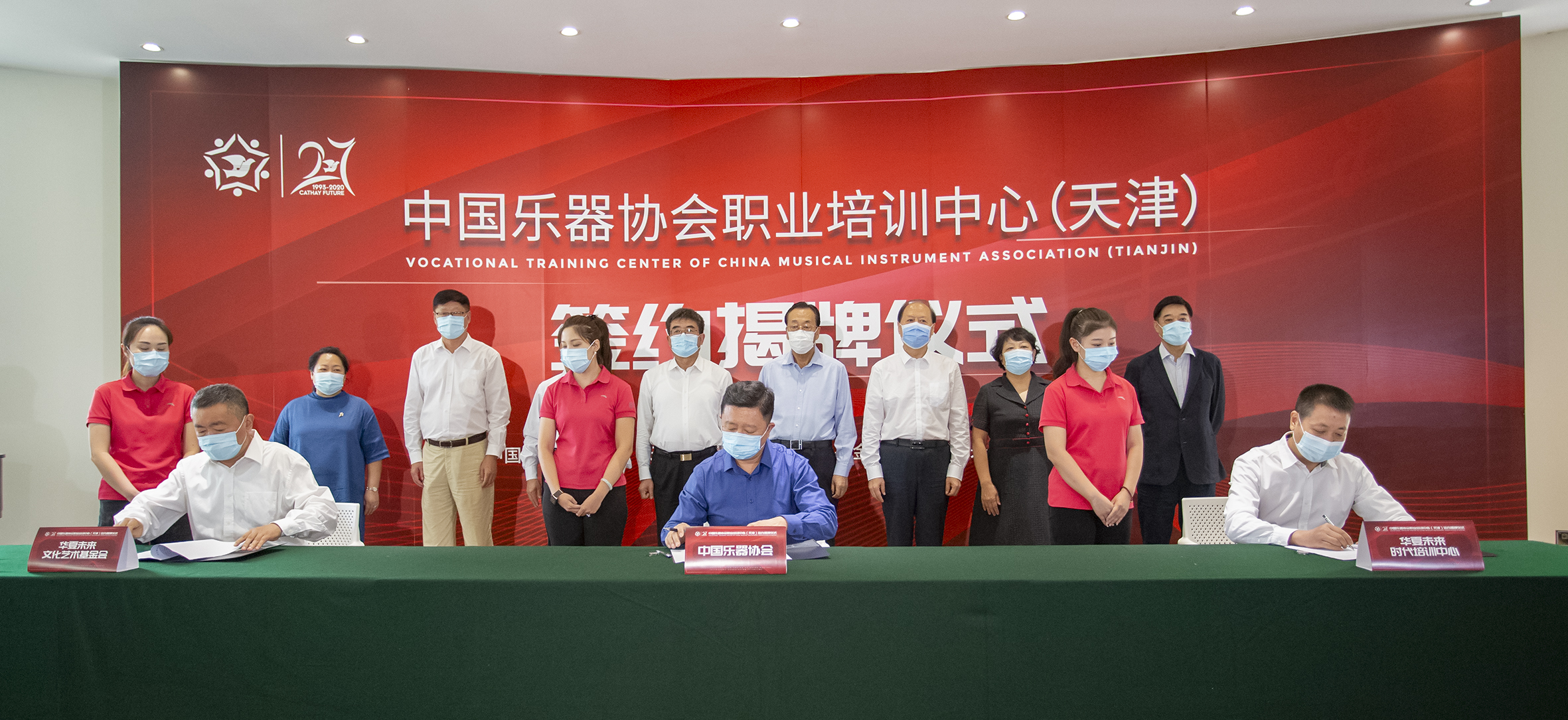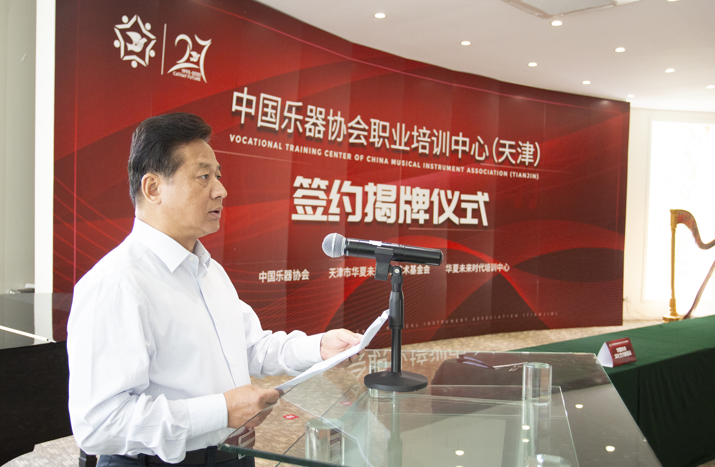 中国乐器协会职业培训中心(天津)由中国乐器协会、天津市华夏未来文化艺术基金会、华夏未来时代培训中心三方联合成立。签约仪式由中国乐器协会专职副理事长孙瑞勇主持。